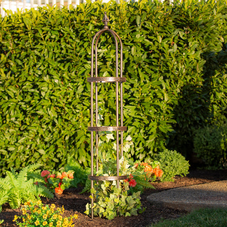 7' Powder-Coated Steel Garden Obelisk, Bronze