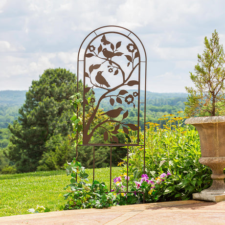 Metal Arched Birds and Leaves Garden Arbor with Gate
