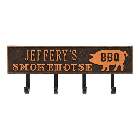 Smokehouse BBQ Rectangle Hook Plaque, Antique Copper