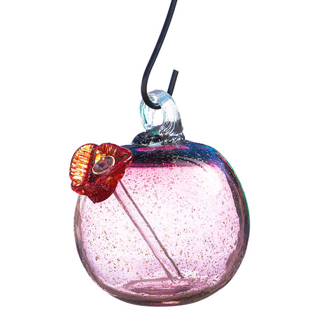 Red Speckled Art Glass Hummingbird Feeder with Bronze Gondola
